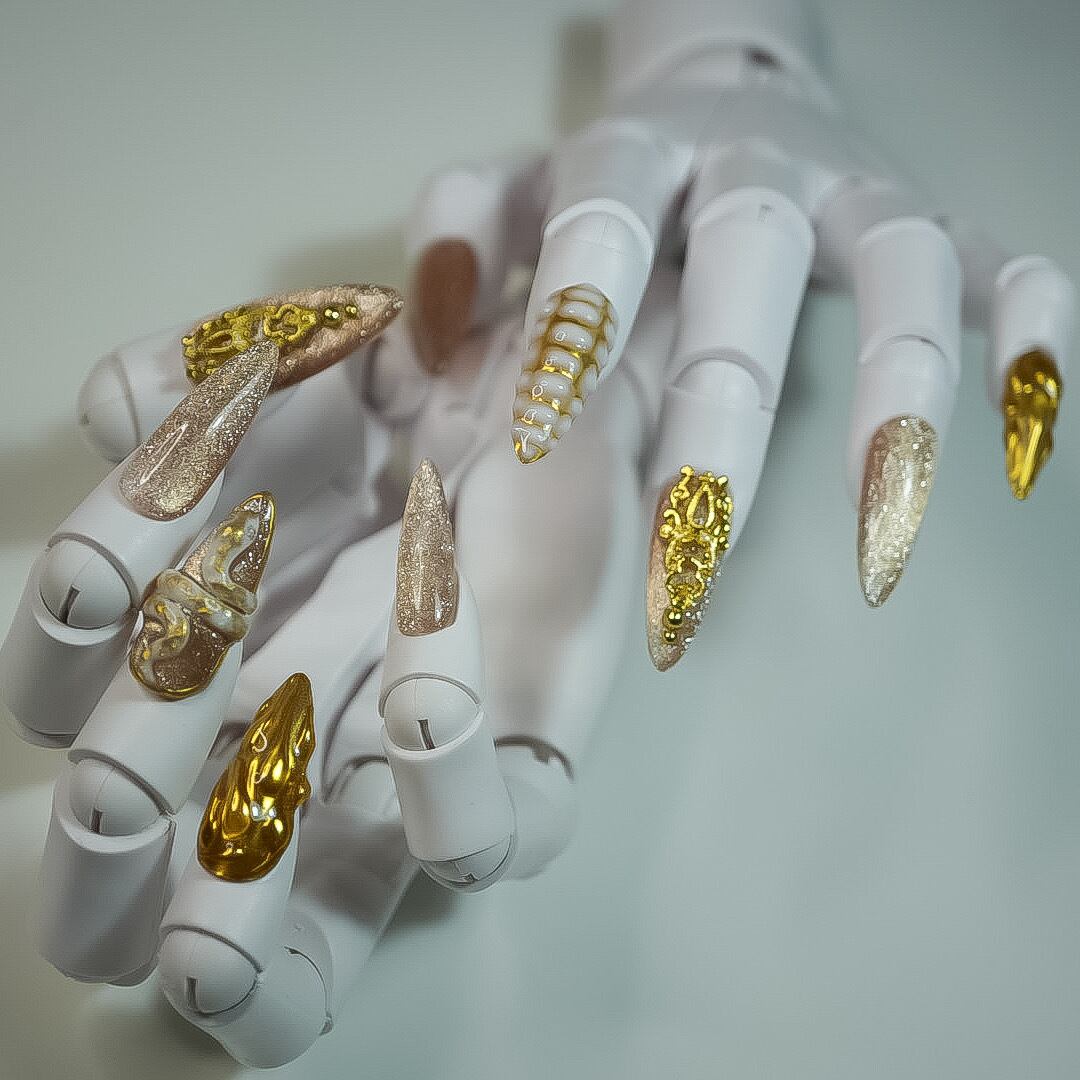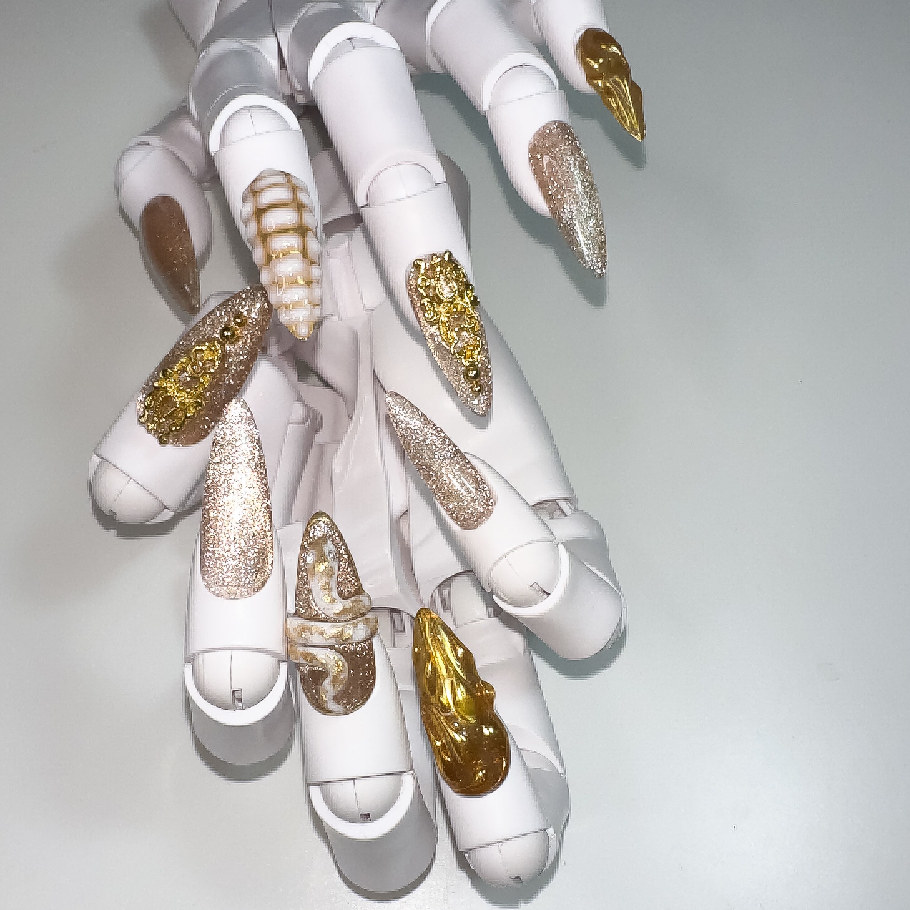 ゴールドの煌めきと白蛇で運気が上がりそうな予感のデザイン。